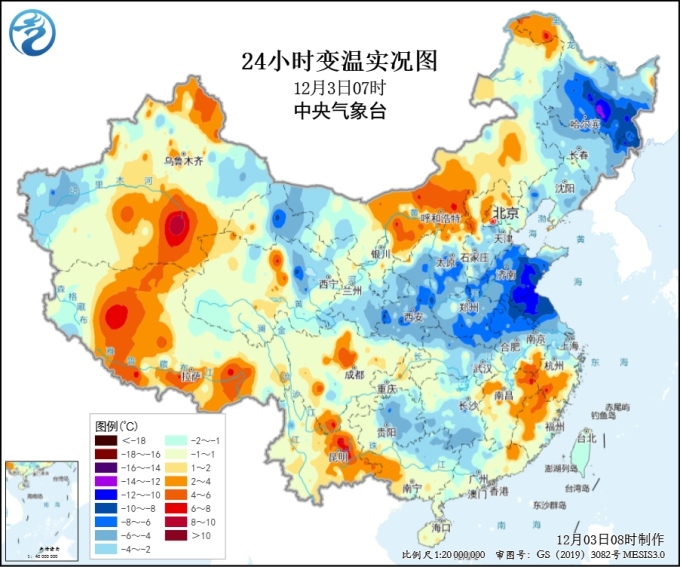 中國網(wǎng)12月3日訊 據(jù)中央氣象臺消息,隨著寒潮主體進(jìn)一步東移南下,過去一天我國中東部地區(qū)氣溫持續(xù)下跌。最新氣象監(jiān)測顯示,3日早晨,山東、河南、江蘇、安徽一帶氣溫下降幅度達(dá)到4~8℃,局地降幅超過10℃,最低氣溫0℃線位于蘇皖北部、河南南部至陜西南部等地。