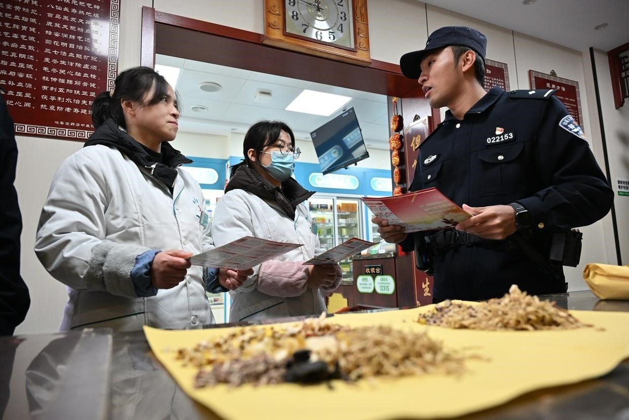 12月4日,安徽省當(dāng)涂縣公安局姑孰派出所民警走街串巷開展法治宣傳活動(dòng)。(工人日?qǐng)?bào)通訊員 衛(wèi)學(xué)超 攝)