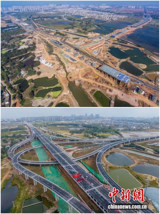 2025年12月18日,海南自由貿(mào)易港正式啟動全島封關(guān)。近年來,海南自貿(mào)港建設(shè)在利好政策帶動下不斷刷新“自貿(mào)港速度”,一個個重大項目、重點園區(qū)拔地而起,直觀呈現(xiàn)海南自貿(mào)港的蓬勃生機。這里正成為中國對外開放的新前沿、互利合作的新熱土和推動經(jīng)濟全球化的新引擎。上資料圖為2020年5月20日的海口江東新區(qū)起步區(qū)路網(wǎng)建設(shè)施工現(xiàn)場,下資料圖為2025年12月7日已初具規(guī)模的??诮瓥|新區(qū)起步區(qū)。(拼版圖,無人機照片)