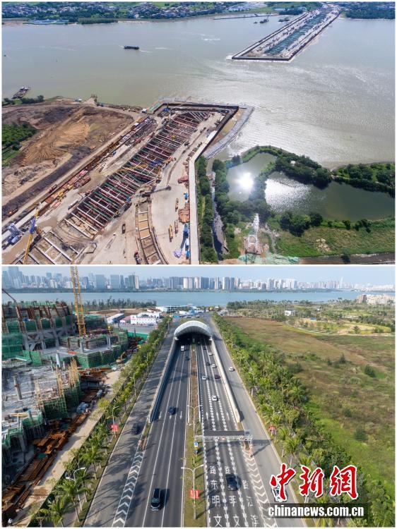 2025年12月18日,海南自由貿(mào)易港正式啟動全島封關(guān)。近年來,海南自貿(mào)港建設(shè)在利好政策帶動下不斷刷新“自貿(mào)港速度”,一個個重大項目、重點園區(qū)拔地而起,直觀呈現(xiàn)海南自貿(mào)港的蓬勃生機。這里正成為中國對外開放的新前沿、互利合作的新熱土和推動經(jīng)濟全球化的新引擎。上資料圖為2019年6月19日的海口文明東越江隧道施工現(xiàn)場,下資料圖為2025年12月7日已建成通車的海南省首條跨越南渡江隧道——文明東隧道。(拼版圖,無人機照片)