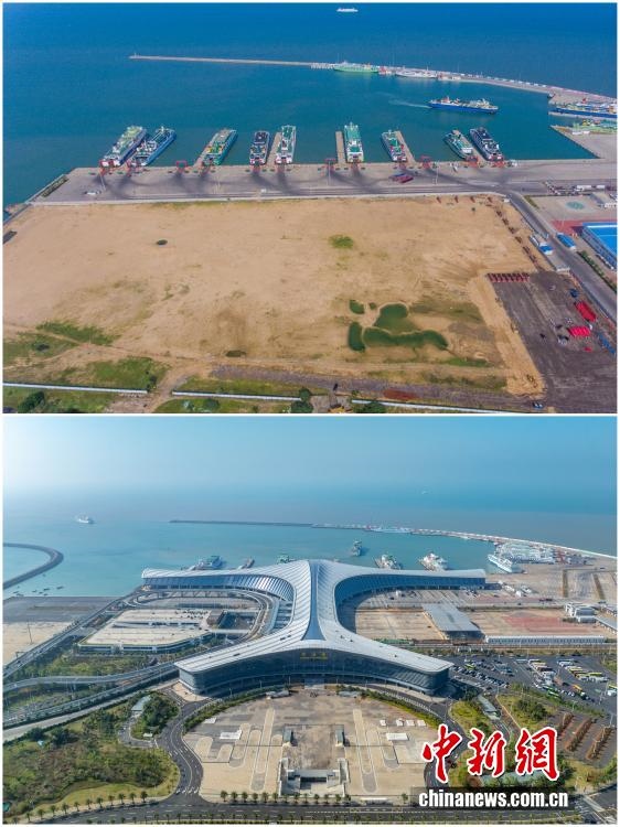 2025年12月18日,海南自由貿(mào)易港正式啟動全島封關(guān)。近年來,海南自貿(mào)港建設(shè)在利好政策帶動下不斷刷新“自貿(mào)港速度”,一個個重大項目、重點園區(qū)拔地而起,直觀呈現(xiàn)海南自貿(mào)港的蓬勃生機。這里正成為中國對外開放的新前沿、互利合作的新熱土和推動經(jīng)濟全球化的新引擎。上資料圖為2018年9月29日的??谛潞L裝碼頭客運綜合樞紐站項目建設(shè)地塊,下資料圖為2025年12月5日已投入使用的海口新海滾裝碼頭客運綜合樞紐站。(拼版圖,無人機照片)