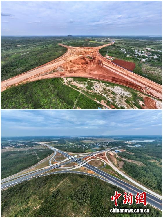 2025年12月18日,海南自由貿(mào)易港正式啟動全島封關(guān)。近年來,海南自貿(mào)港建設(shè)在利好政策帶動下不斷刷新“自貿(mào)港速度”,一個個重大項目、重點園區(qū)拔地而起,直觀呈現(xiàn)海南自貿(mào)港的蓬勃生機。這里正成為中國對外開放的新前沿、互利合作的新熱土和推動經(jīng)濟全球化的新引擎。上資料圖為2024年10月23日建設(shè)中的海南首條雙向八車道高速公路——海南洋浦疏港高速公路SG01標(biāo)段光村互通,下資料圖為2025年12月2日正進(jìn)行瀝青攤鋪作業(yè)的海南洋浦疏港高速公路光村互通。(拼版圖,無人機照片)