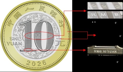 1.2026年賀歲雙色銅合金紀(jì)念幣公眾防偽特征