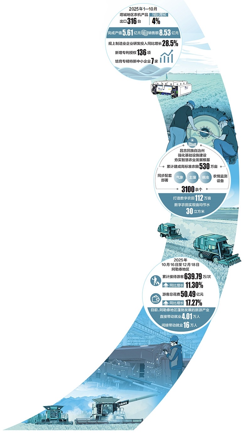 歲末之際,北疆大地處處涌動(dòng)著蓬勃生機(jī)與創(chuàng)新活力。從智能農(nóng)機(jī)產(chǎn)銷(xiāo)兩旺到數(shù)字農(nóng)田“云端”管理,從冰雪熱潮點(diǎn)燃消費(fèi)新引擎到物流樞紐貫通能源動(dòng)脈,一幅以“新”為底色的發(fā)展畫(huà)卷正徐徐展開(kāi)。本期北疆觀察版年終盤(pán)點(diǎn),聚焦四組生動(dòng)實(shí)踐,看新技術(shù)、新產(chǎn)業(yè)、新模式如何匯聚成新質(zhì)生產(chǎn)力,為區(qū)域高質(zhì)量發(fā)展注入強(qiáng)勁動(dòng)能。