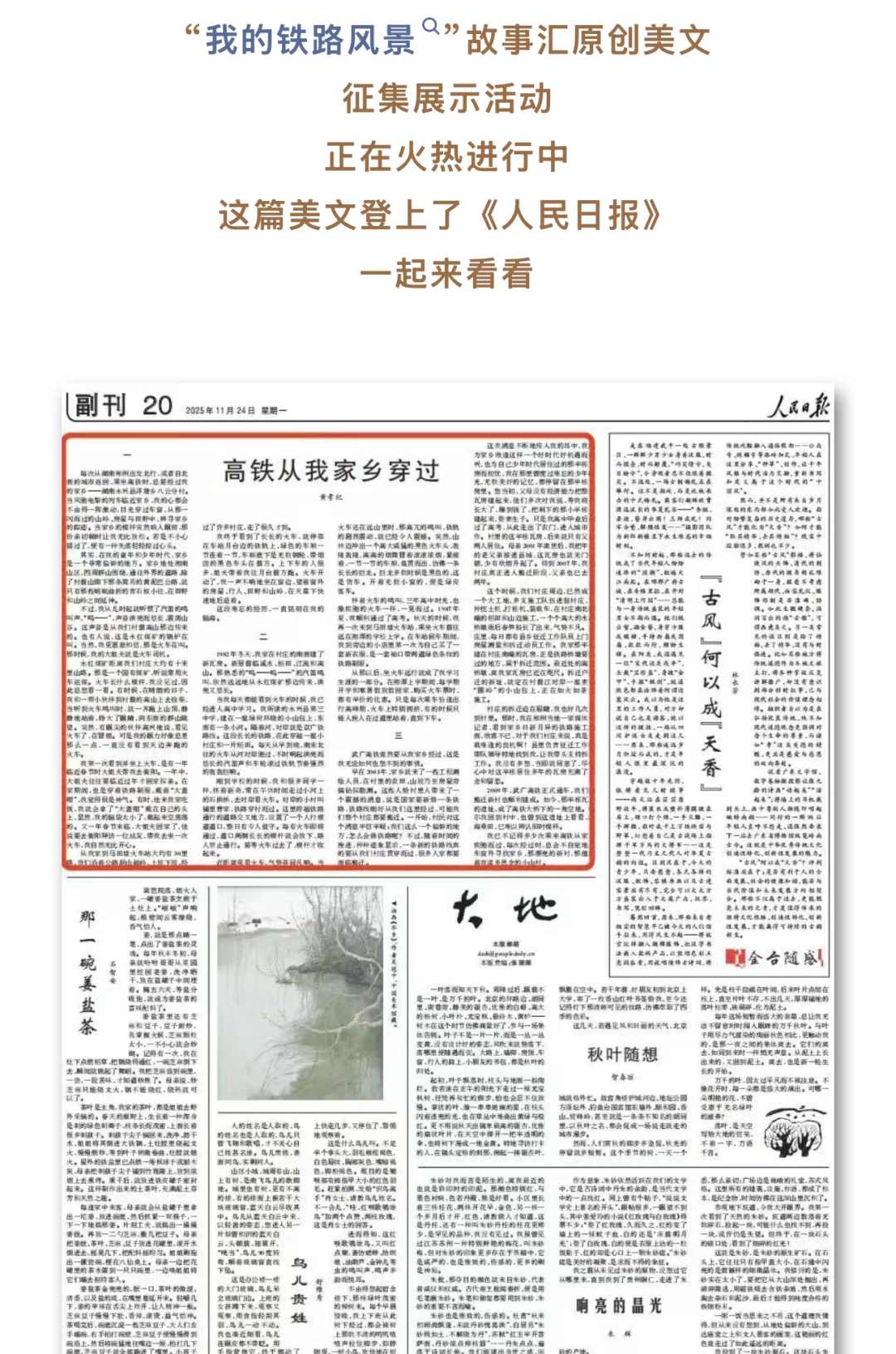 “我的鐵路風(fēng)景”主題宣傳活動(dòng),讓人民當(dāng)主角,以鐵路線為紐帶,從旅客和網(wǎng)友的角度充分展現(xiàn)了中國式現(xiàn)代化建設(shè)新成就、美麗中國新畫卷、人民幸福生活新圖景和文明出行新風(fēng)尚,與“十四五”即將圓滿收官形成同頻共振。