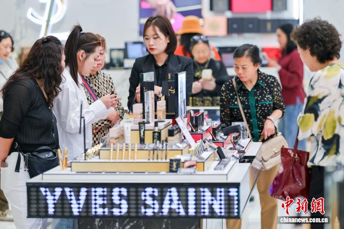1月18日,顧客在cdf海口國際免稅城選購化妝品。海南自貿(mào)港封關(guān)首月,離島免稅市場火爆。 中新網(wǎng)記者 駱云飛 攝