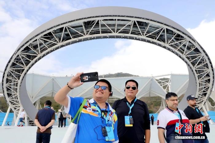 1月19日,第六屆亞洲沙灘運(yùn)動(dòng)會(huì)世界媒體大會(huì)暨世界轉(zhuǎn)播商大會(huì)在海南三亞舉行。圖為國際記者參訪三亞天涯海角游覽區(qū)亞沙公園。(第六屆亞洲沙灘運(yùn)動(dòng)會(huì)執(zhí)委會(huì) 供圖)