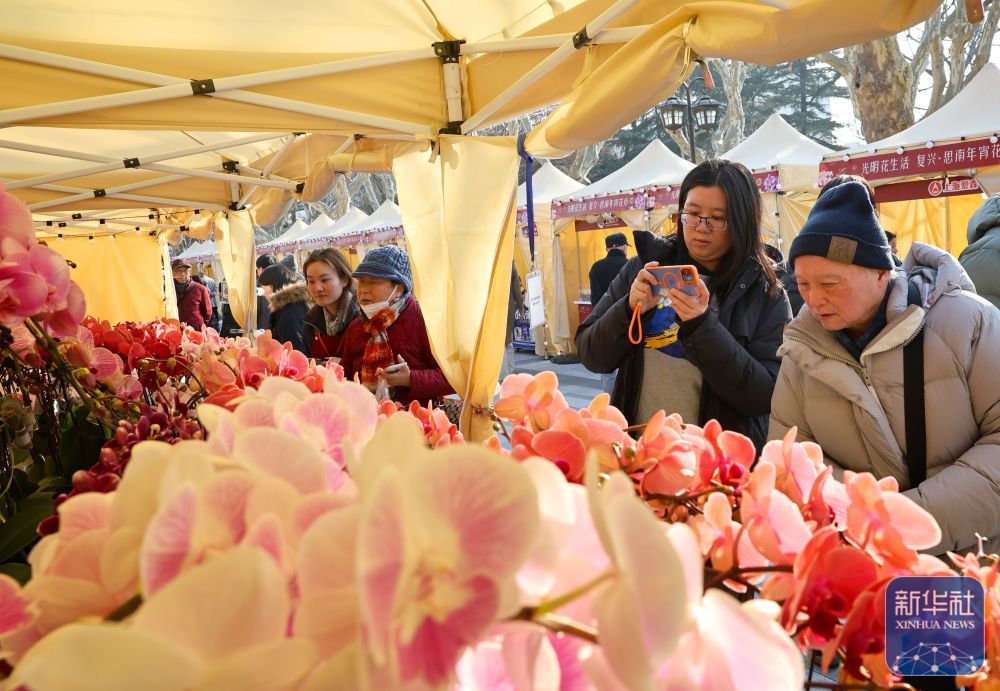 ↑1月23日,市民游客在上海復(fù)興公園年宵花市上選購蝴蝶蘭。新華社記者 方喆 攝
