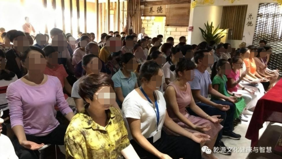 ▲某“乾源文化”培訓(xùn)點(diǎn),大批學(xué)員跟隨打坐練習(xí)
