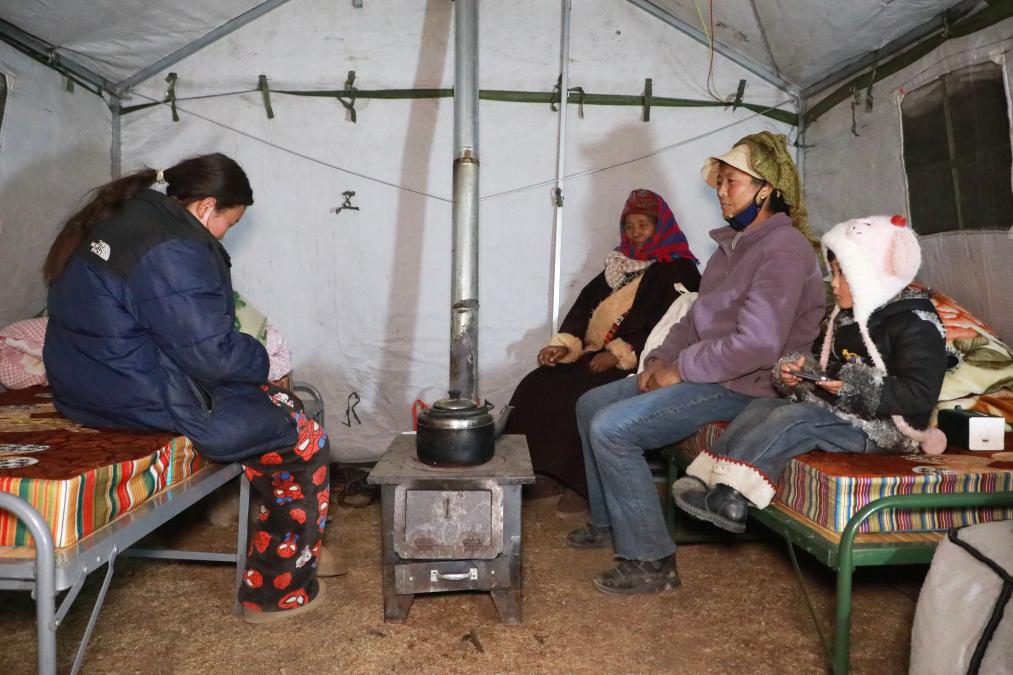 正在火爐旁取暖的村民丁主告訴記者,地震發(fā)生時,他正在山上撿柴火,趕回家時發(fā)現,家人都跟隨干部轉移到了村里的空地上。