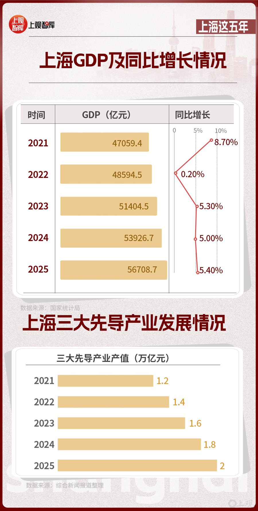 2023年,上海成為全國(guó)首個(gè)經(jīng)濟(jì)總量突破5萬億元的城市;2025年,上海GDP突破5.6萬億元,向下一個(gè)里程碑進(jìn)發(fā)。