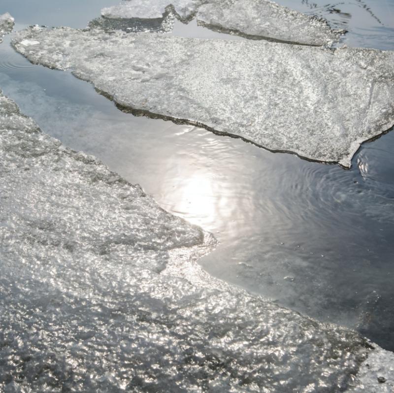 立春后第三個五日,河里的冰開始融化,魚開始到水面上游動,此時水面上還有碎冰片,如同被魚負(fù)著一般浮在水面。