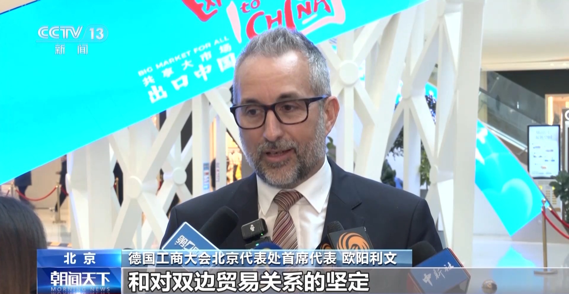 德國工商大會(huì)北京代表處首席代表 歐陽利文:今天的活動(dòng)也傳遞了信心和對(duì)雙邊貿(mào)易關(guān)系的堅(jiān)定,中國市場變化很快,消費(fèi)者偏好也在變化。因此專門為中國設(shè)計(jì)和制造的產(chǎn)品需求很高,考慮到中國市場的規(guī)模,這些是令人興奮的機(jī)會(huì)。