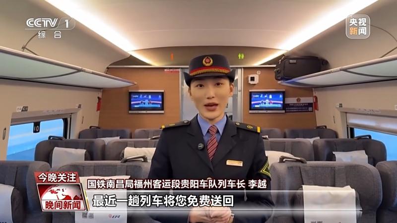 國(guó)鐵南昌局福州客運(yùn)段貴陽(yáng)車(chē)隊(duì)列車(chē)長(zhǎng) 李越:您只需要找到列車(chē)的工作人員,出示身份證件,列車(chē)長(zhǎng)核驗(yàn)好身份信息,開(kāi)具客運(yùn)記錄。又有旅客問(wèn),我下車(chē)的時(shí)候該找誰(shuí)呢,您先別著急,列車(chē)長(zhǎng)會(huì)在最近的前方站將您交接下車(chē),車(chē)站的工作人員會(huì)安排最近一趟列車(chē)將您免費(fèi)送回。