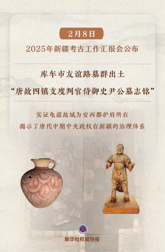 2月8日在京舉行的2025年新疆考古工作匯報(bào)會(huì)上,公布了庫(kù)車市友誼路墓群等“實(shí)證歷代中央政權(quán)有效管轄治理新疆”考古新發(fā)現(xiàn)。