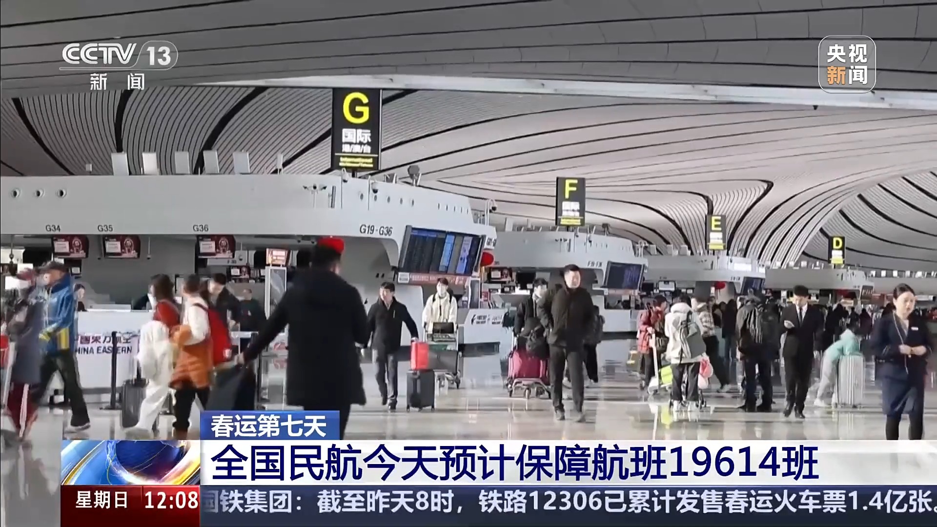 全國(guó)民航今天預(yù)計(jì)保障航班19614班,可提供座位數(shù)297萬(wàn)個(gè),預(yù)計(jì)運(yùn)輸旅客239萬(wàn)人次。