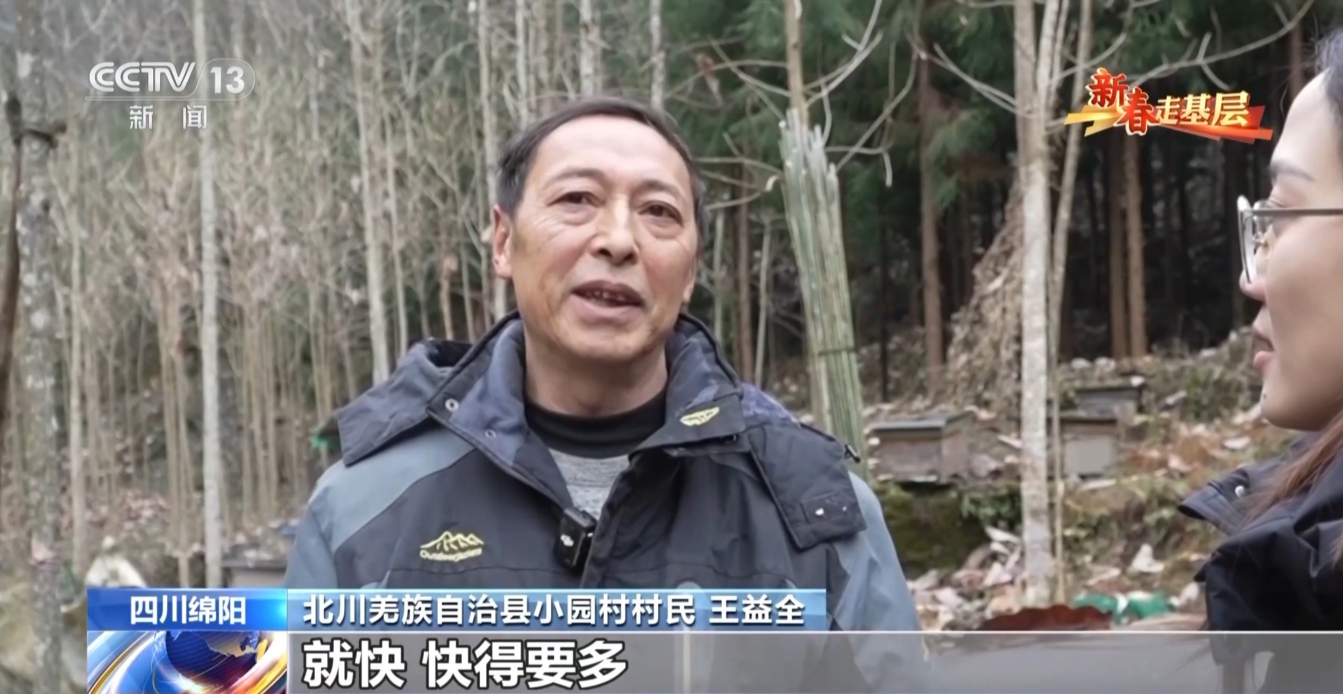四川綿陽北川羌族自治縣小園村村民 王益全:以前人工背起要走一個多兩個小時,背到山底下。現(xiàn)在有無人機了就方便了,就快得多,一個無人機要當好多個人用。