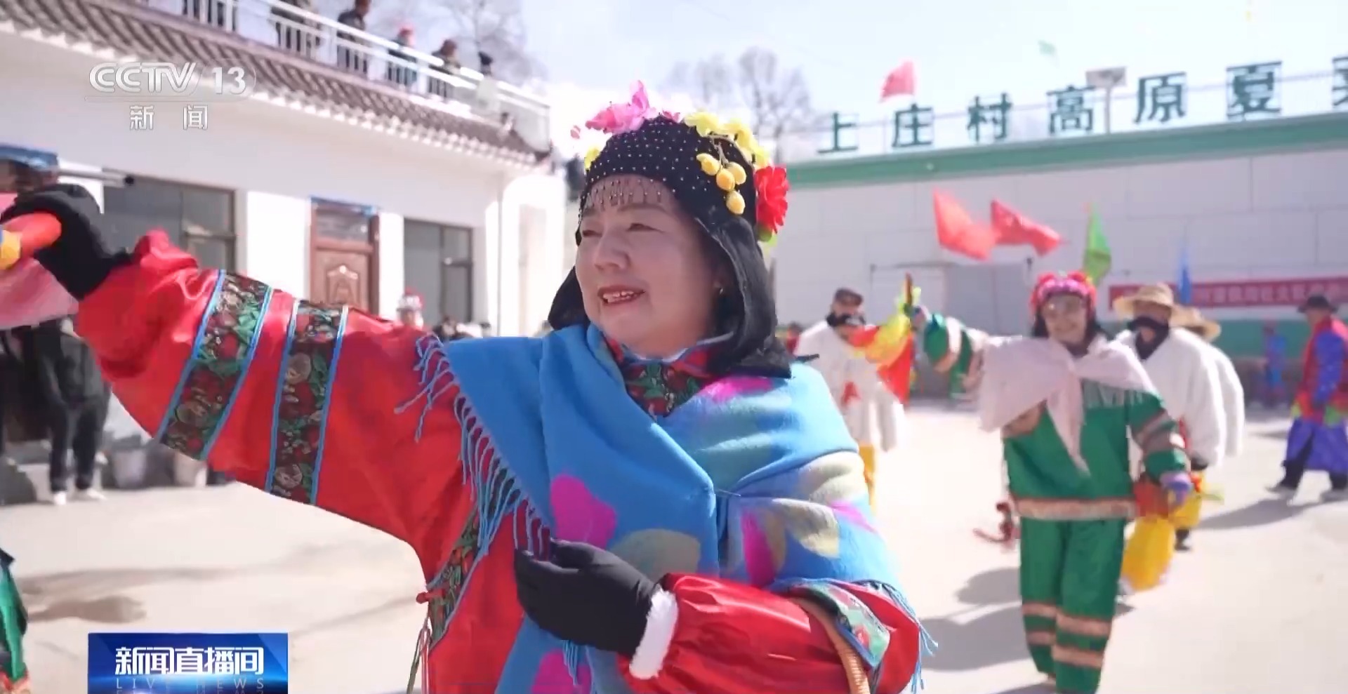 當(dāng)?shù)乇硌莸纳缁鸾旭R銜山秧歌,是甘肅省級非遺,一種以歌舞等民間藝術(shù)形式演繹本地農(nóng)耕文化的活動(dòng)。上莊村外出務(wù)工的村民較多,村里的社火表演已經(jīng)中斷十多年。這次村里提出重啟社火,村民們熱情高漲、踴躍報(bào)名。