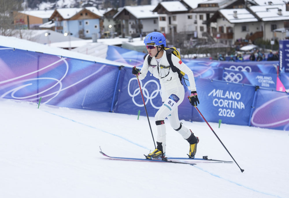 2026年2月21日,次旦玉珍在米蘭-科爾蒂納冬奧會(huì)滑雪登山混合接力比賽中。新華社記者 胡虎虎 攝
