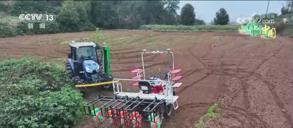 在江津區(qū)永興鎮(zhèn)黃莊村,記者看到,一臺中型拖拉機正穿梭在田間,不到1個小時,這塊4畝多的田地就完成了機耕作業(yè).緊接著,無人駕駛播種機開始播種,隨著它的前行,一粒粒玉米種子精準進入土壤。據(jù)了解,江津區(qū)屬于典型的丘陵山地,地塊面積小、坡度大且分布零散,當?shù)赝ㄟ^推廣應(yīng)用高性能的中小型農(nóng)機,大大提高了春耕效率,降低了成本。