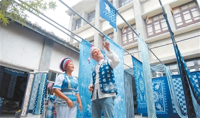 英國籍視頻博主斯圖爾特·維金在云南大理體驗(yàn)白族扎染技藝。吳桐 攝