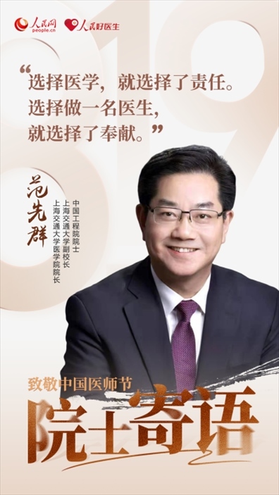 2023年8月19日是第六個中國醫(yī)師節(jié),今年醫(yī)師節(jié)的主題是“勇?lián)】凳姑T就時代新功”,大力弘揚醫(yī)務(wù)工作者的崇高精神。值此之際,人民網(wǎng)、人民好醫(yī)生客戶端邀請中國工程院和中國科學(xué)院7位院士,為廣大醫(yī)務(wù)工作者們送上殷切的節(jié)日囑托。