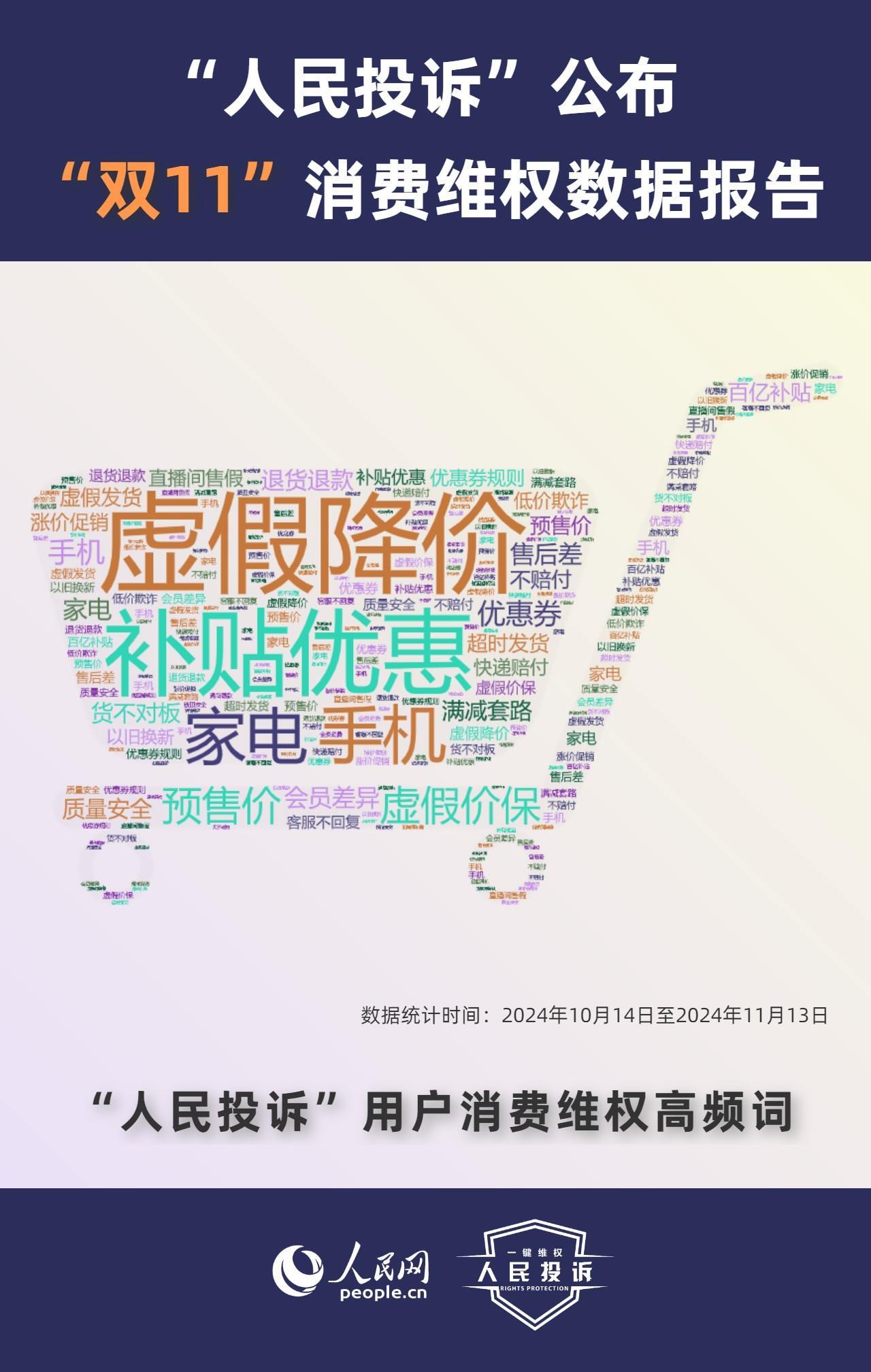 那么,今年你的“雙11”購(gòu)物還遇到了哪些“套路”?據(jù)人民網(wǎng)“人民投訴”平臺(tái)統(tǒng)計(jì),“雙11”期間平臺(tái)共收到17699條(數(shù)據(jù)統(tǒng)計(jì)從2024年10月14日-11月13日)投訴信息。其中,手機(jī)、家電、智能產(chǎn)品、美妝服飾等消費(fèi)領(lǐng)域維權(quán)量大;平臺(tái)“國(guó)補(bǔ)”“以舊換新”等優(yōu)惠規(guī)則不透明,保價(jià)服務(wù)藏“貓膩”,直播間虛假“破價(jià)”,“百億補(bǔ)貼”商品貨不對(duì)板,“高價(jià)預(yù)售”欺詐等問題反映突出。