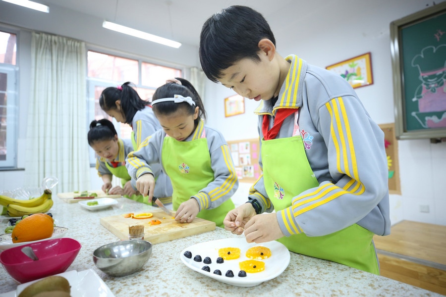 “今日課程學(xué)習(xí)的是水果拼盤和可樂雞翅。”跟隨勺鏟翻動,添上各種調(diào)料,一個個身著圍裙的學(xué)生們正在老師的指導(dǎo)下忙的不亦樂乎。從擇菜、烹飪到清洗廚具,一個個學(xué)生儼然已經(jīng)成為“小廚師”。從三年級開始,學(xué)校還開展了陶藝、木工、科技制作等活動,找準(zhǔn)學(xué)生的興趣點(diǎn),學(xué)校有趣的勞動技能活動吸引了學(xué)生的眼球。
