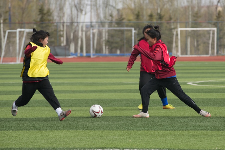 內(nèi)蒙古中學(xué)生女子足球隊(duì)員選拔現(xiàn)場