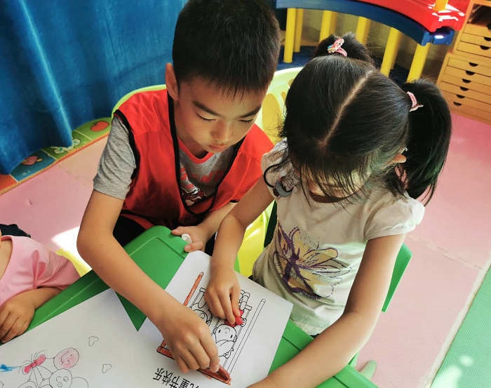 學員和家長與康復(fù)中心的孩子們一起描繪“兒童節(jié)”