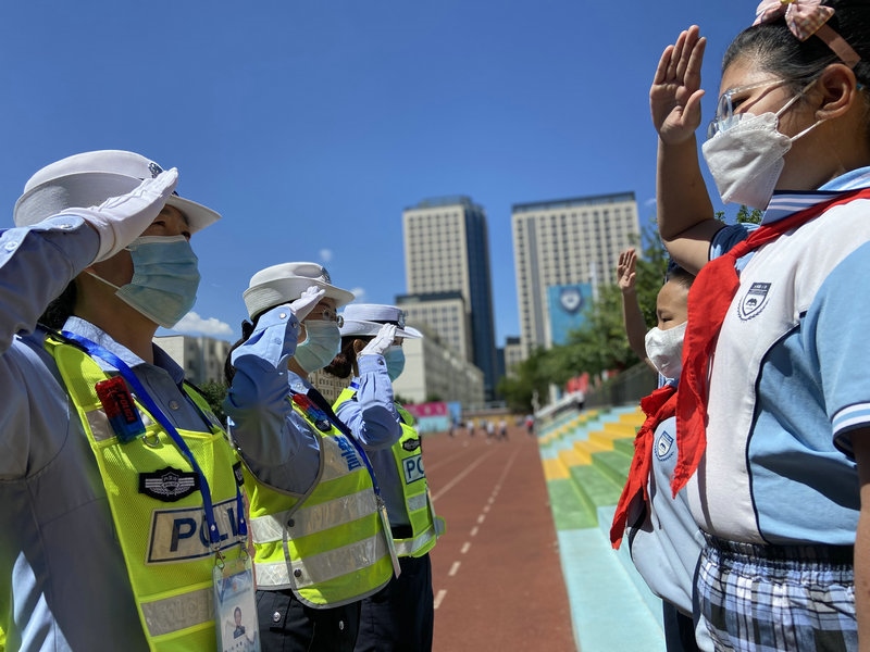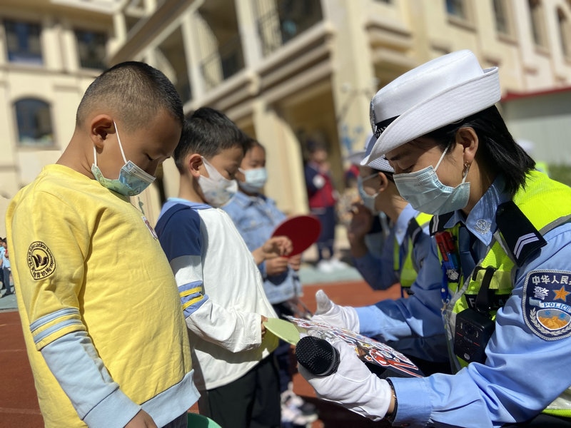 為進(jìn)一步向轄區(qū)內(nèi)小學(xué)生普及交通安全知識(shí),呼和浩特市公安局交通管理支隊(duì)賽罕大隊(duì)女警護(hù)學(xué)中隊(duì)民輔警走進(jìn)校園,開展“交通安全小課堂”的安全教育活動(dòng),通過PPT講解、播放交通事故案例、互動(dòng)問答、戶外游戲等多種形式,為小朋友們送去了一份交通安全知識(shí)的”六一“禮物。