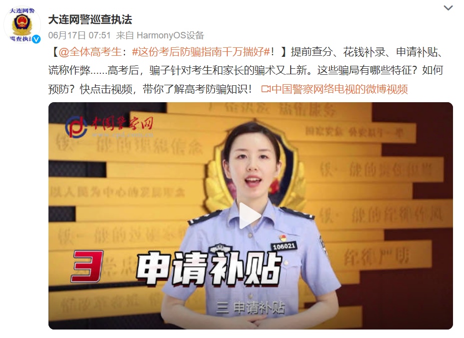 警方提醒廣大考生及考生家長,不管詐騙手段如何演變,萬變不離其宗的“核心需求”就是“要錢”,因此在收到此類短信或電話時,應(yīng)第一時間與學(xué)校、教育部門核實,在無法確認信息真實性的情況下,可撥打96110咨詢或舉報。此外,不要抱有僥幸心理,任何打著有“內(nèi)部名額”或“內(nèi)部渠道”的旗號要求繳納費用的通知均為詐騙。
