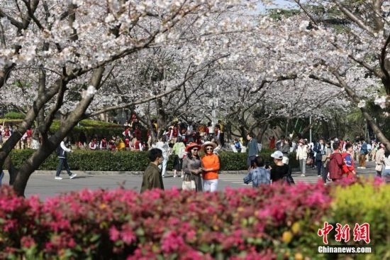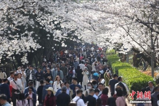 3月15日,武漢大學(xué)賞櫻預(yù)約首日,櫻花大道、鯤鵬廣場附近人潮涌動(dòng)。今年櫻花開放期間,武漢大學(xué)延續(xù)“實(shí)名限額、網(wǎng)絡(luò)預(yù)約、雙重核驗(yàn)”做法,面向社會公眾實(shí)行免費(fèi)預(yù)約賞櫻制,工作日每天預(yù)約限額1.5萬人,周末每天預(yù)約限額3萬人。此外,還將于3月18日舉辦醫(yī)護(hù)賞櫻專場,邀請?jiān)踽t(yī)療隊(duì)及湖北省內(nèi)抗疫醫(yī)護(hù)人員來校賞櫻,并在弘毅門(原西門)舉行歡迎儀式。 趙軍 攝