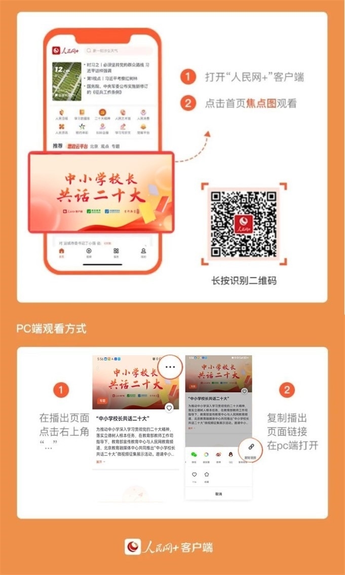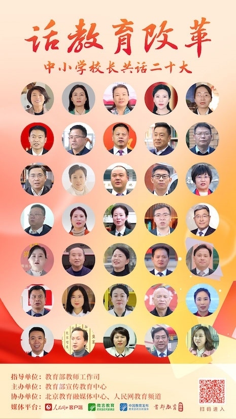 5月12日起,“人民網(wǎng)+”客戶端推出“中小學(xué)校長共話二十大”專題節(jié)目,每日11:00上新,圍繞黨的領(lǐng)導(dǎo)、鑄魂育人、教育改革、教育公平、強(qiáng)師興校等話題述成績、言感悟、談現(xiàn)狀、話未來,切實(shí)把黨的二十大精神轉(zhuǎn)化為辦學(xué)治校、教書育人的實(shí)際行動(dòng)。讓我們一起傾聽全國百位中小學(xué)校長共話二十大,共同描繪教育事業(yè)發(fā)展的新藍(lán)圖。