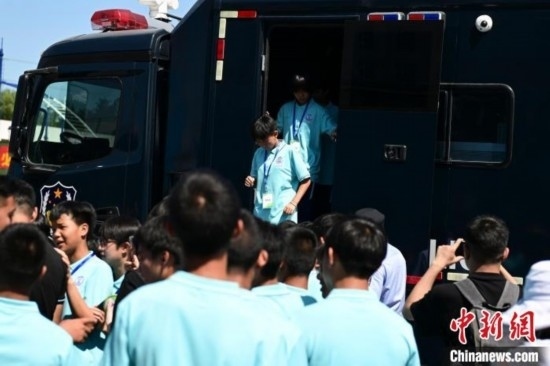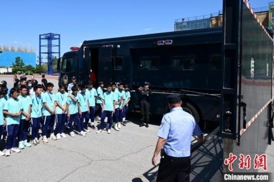 由北京市公安局支教民警組建并執(zhí)教的貴州黔西南州青少年校園足球男、女隊(duì)員共34人來到北京參加夏令營活動(dòng)。今天,隊(duì)員們觀看特警訓(xùn)練及警犬演示,現(xiàn)場(chǎng)體驗(yàn)警械武器和警車等裝備使用,感受首都公安風(fēng)采。