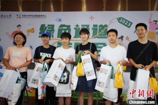 在綠色通道辦理入學的學生獲贈入校大禮包。泱波 攝