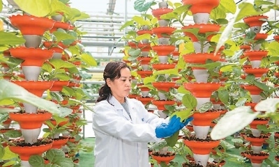 近年來,江蘇省張家港市大力發(fā)展智慧農(nóng)業(yè),引進(jìn)高效示范性農(nóng)業(yè)項(xiàng)目。圖為該市現(xiàn)代農(nóng)業(yè)科技示范園生產(chǎn)基地的工作人員在作業(yè)中。任廣真攝