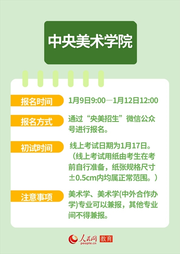 人民網(wǎng)北京1月12日電 近日,全國(guó)多所高校發(fā)布藝術(shù)類(lèi)本科招生簡(jiǎn)章,并明確藝考報(bào)名及初試時(shí)間。作為“新政”落地后的首次考試,2024年的“新藝考”備受關(guān)注。