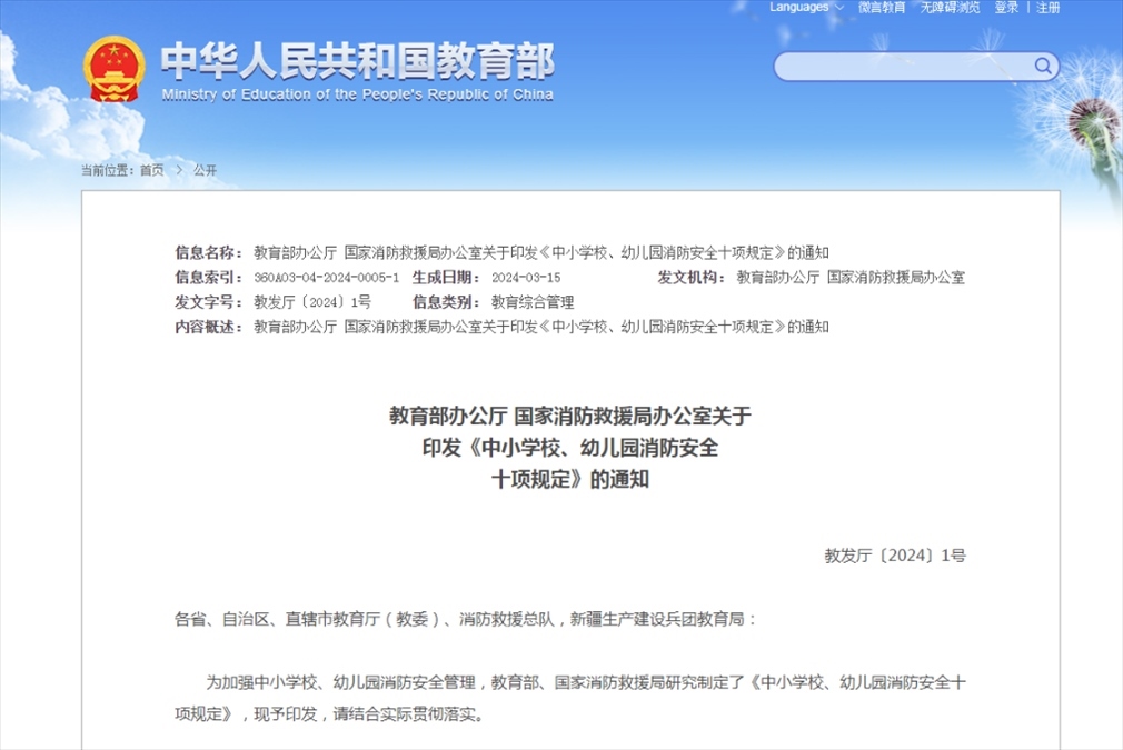 記者近日從教育部獲悉,為加強(qiáng)中小學(xué)校、幼兒園消防安全管理,教育部、國(guó)家消防救援局研究制定了《中小學(xué)校、幼兒園消防安全十項(xiàng)規(guī)定》。規(guī)定明確,中小學(xué)校、幼兒園應(yīng)定期開(kāi)展教職工、安保人員消防安全培訓(xùn)。