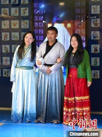 4月3日,北京華文學(xué)院“中不中文培訓(xùn)研修班”的3名不丹學(xué)員身著漢服體驗(yàn)T臺(tái)走秀。(中新網(wǎng)記者韓輝攝)