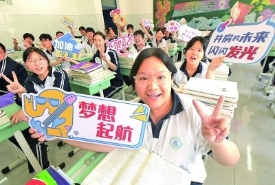 高考臨近,各地多所高中舉辦特色活動(dòng),幫助高三學(xué)生釋放壓力,放松心情,以樂(lè)觀、自信的心態(tài)迎戰(zhàn)高考。圖為5月14日,河北省石家莊新樂(lè)市第四中學(xué)高三的學(xué)生在教室為自己加油鼓勁。新華社發(fā)