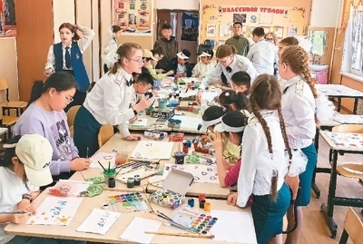 近日,黑龍江省黑河市第六小學(xué)教育集團(tuán)赴俄羅斯布拉戈維申斯克第六學(xué)校開(kāi)展文化交流。交流期間,中國(guó)學(xué)生體驗(yàn)了俄羅斯的課堂文化,雙方增進(jìn)了對(duì)彼此文化的了解;操場(chǎng)上,兩國(guó)學(xué)生載歌載舞,通過(guò)音樂(lè)和舞蹈進(jìn)一步加深了友誼。圖為中俄兩國(guó)學(xué)生一起繪畫(huà)。