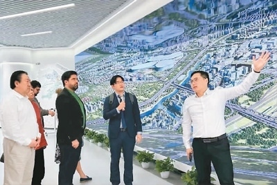 近日,俄中商務(wù)園總裁陳志剛(左一)隨圣彼得堡市議會(huì)代表團(tuán)考察上海市虹橋管委會(huì)。陳志剛供圖