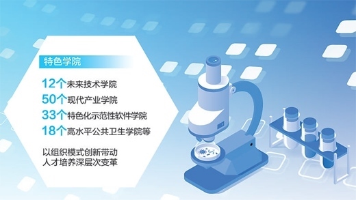 高東鋒:新時(shí)代以來,高等教育戰(zhàn)線積極服務(wù)國(guó)家戰(zhàn)略需要,體系化推進(jìn)新工科、新醫(yī)科、新農(nóng)科、新文科建設(shè),在教育教學(xué)的組織模式、培養(yǎng)機(jī)制、內(nèi)容方法、理論實(shí)踐等方面持續(xù)深化改革。聚焦戰(zhàn)略性新興領(lǐng)域和急需領(lǐng)域,布局建設(shè)了12個(gè)未來技術(shù)學(xué)院、50個(gè)現(xiàn)代產(chǎn)業(yè)學(xué)院、33個(gè)特色化示范性軟件學(xué)院、18個(gè)高水平公共衛(wèi)生學(xué)院等特色學(xué)院,分批布局45個(gè)國(guó)家產(chǎn)教融合創(chuàng)新平臺(tái),有針對(duì)性、有組織地開展人才培養(yǎng),取得積極進(jìn)展,牽引帶動(dòng)高等教育的全方位、全過程、全要素改革。