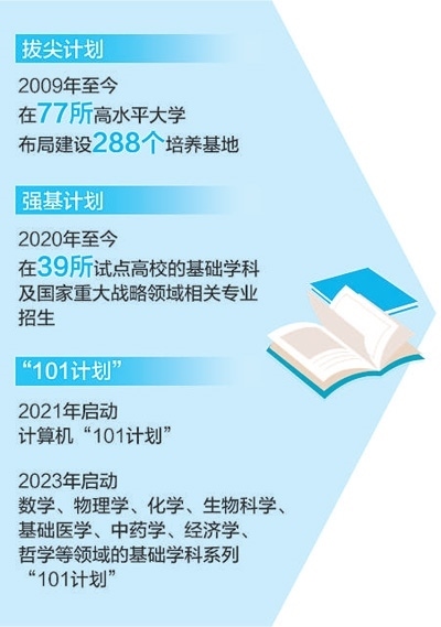 高東鋒:教育部依托高水平大學(xué)累計(jì)建設(shè)288個(gè)基礎(chǔ)學(xué)科拔尖學(xué)生培養(yǎng)基地,強(qiáng)化有組織拔尖創(chuàng)新人才培養(yǎng),在計(jì)算機(jī)科學(xué)、數(shù)學(xué)、基礎(chǔ)醫(yī)學(xué)、經(jīng)濟(jì)學(xué)等9個(gè)領(lǐng)域?qū)嵤?01計(jì)劃”,建設(shè)核心課程、教材、師資團(tuán)隊(duì)和實(shí)踐項(xiàng)目。基礎(chǔ)學(xué)科拔尖學(xué)生培養(yǎng)計(jì)劃實(shí)施高校建設(shè)了一批榮譽(yù)學(xué)院、書院等“育人試驗(yàn)區(qū)”,逐漸形成了“選拔設(shè)通道、培養(yǎng)留空間、評(píng)價(jià)長(zhǎng)周期、協(xié)同聚合力”的有效模式。