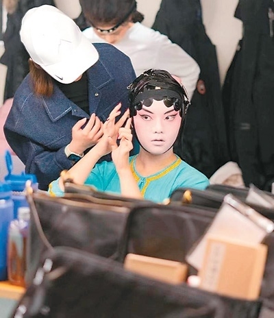 史欣玉對于演出扮相有嚴(yán)格的要求,她說:“我想盡可能地將戲曲完美呈現(xiàn)在觀眾眼前,讓大家一看就知道,我們的演出是專業(yè)的,因此妝造、舞臺效果都不能馬虎。我們每個人身兼數(shù)職,既要表演,也要學(xué)習(xí)妝造,互相幫忙完成扮相?!?/p>