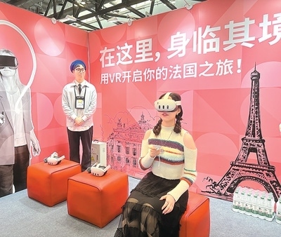法國高校展區(qū)設(shè)立了VR體驗項目,觀眾戴上眼鏡后可以看到埃菲爾鐵塔等地標建筑。