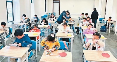 馬耳他中文學(xué)校學(xué)生正在完成剪紙作品。