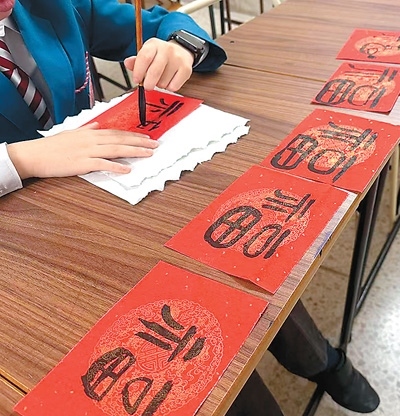 在馬耳他的一些校園中,春節(jié)的氛圍同樣濃厚。圣瑪格麗特中學(xué)“中國(guó)角”的師生們手握毛筆,全神貫注地書(shū)寫(xiě)著春聯(lián)和福字;在馬耳他中文學(xué)校,學(xué)生們?cè)诳自豪蠋煹闹笇?dǎo)下,手指翻飛間,將紅紙化作一幅幅妙趣橫生的剪紙作品。