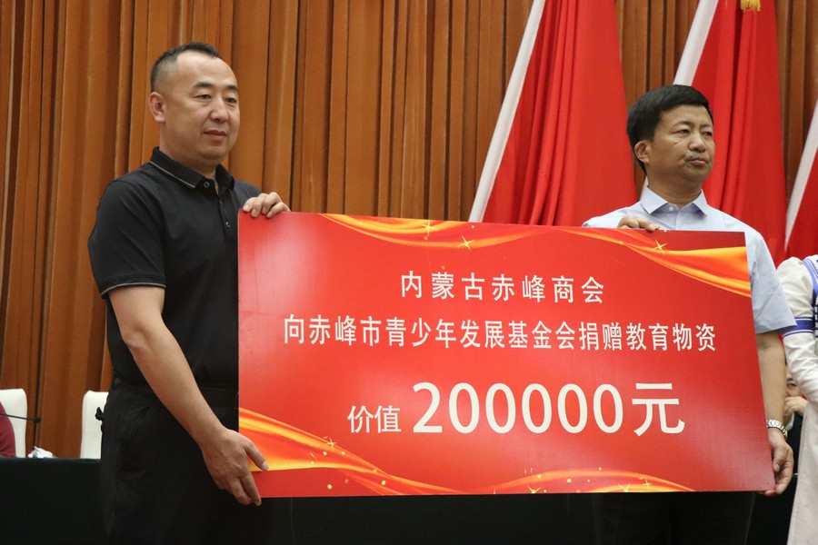 內(nèi)蒙古赤峰商會(huì)還聯(lián)合會(huì)員單位,利用商會(huì)成立之機(jī),向家鄉(xiāng)赤峰市工商聯(lián)、巴林左旗三峽中學(xué)、赤峰市青少年發(fā)展基金會(huì)和赤峰市政府捐贈(zèng)款物。